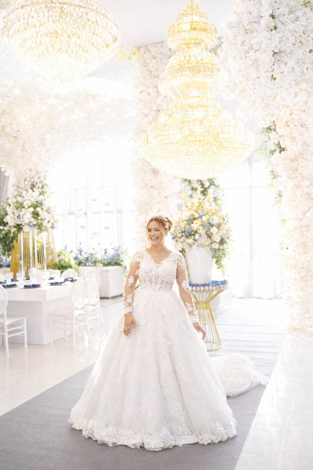 2218 – VESTIDO DE NOIVA PRINCESA TODO EM RENDA MANGA LONGA