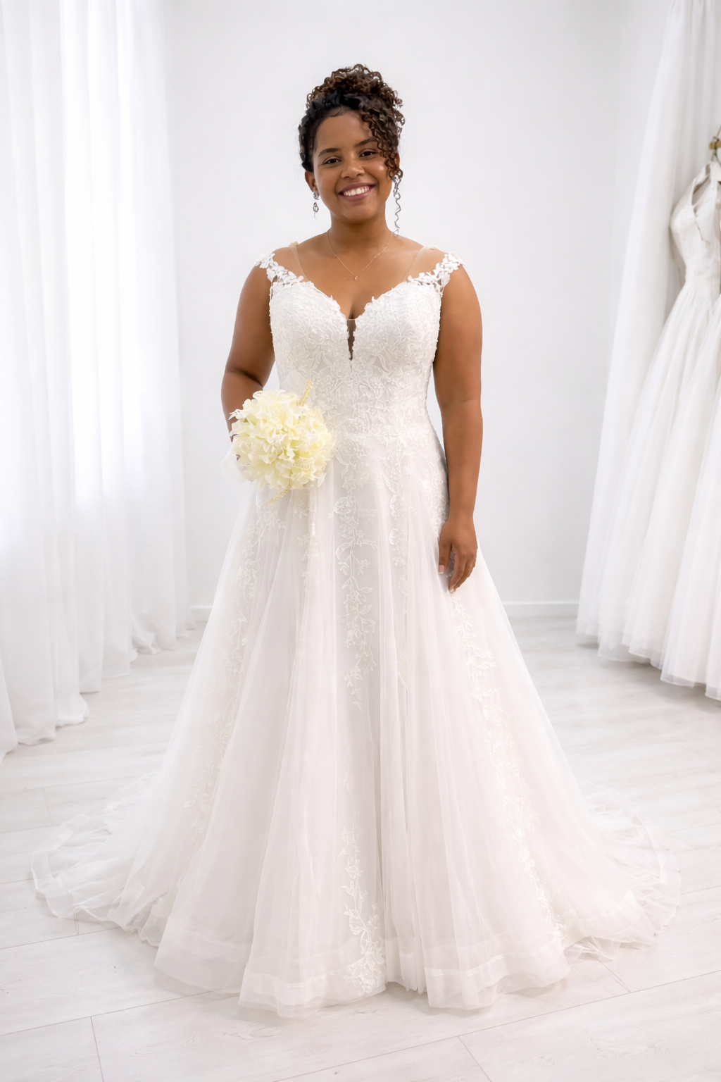 2236 – VESTIDO DE NOIVA EVASÊ SAIA NO TULE RENDA BORDADA PLUS SIZE